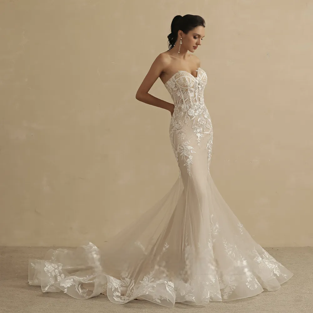 Poročna obleka s srčastim deklotejem